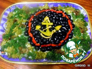Вкусный, сытный, я бы даже сказала - мужской салат. Готовила этот салат для мужа и его сослуживцев-музыкантов оркестра морской пехоты.