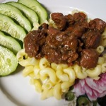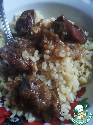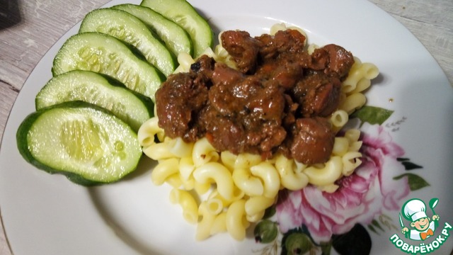 Тушить до мягкости. Все зависит от типа мяса. Когда пупочки уже будут готовы, утушить так, чтобы соуса осталось половина от количества мяса. Вот и все! Вкуснятина готова! Подавать с любым гарниром.