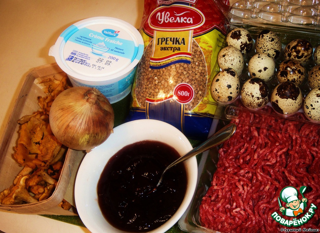 Ингредиенты для «Гречневая каша с грибами в мясных корзинках «Ангус Янг»»: