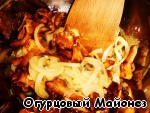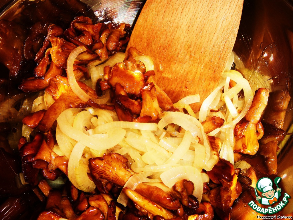 Сверху добавляем лисички с луком.