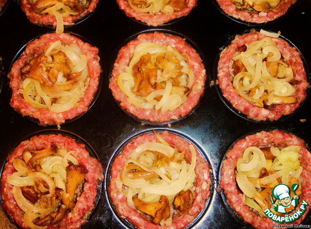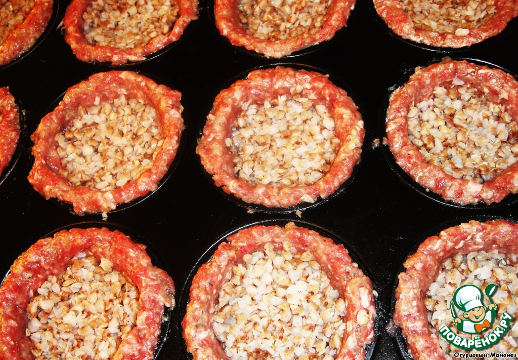 Рецепт «Гречневая каша с грибами в мясных корзинках «Ангус Янг»»: