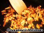 Смешиваем обжаренные грибы и лук. Это будет одна из частей начинки.