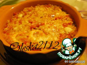 Выкладываем нашу массу в форму для запекания (или как я в порционные формочки). Сверху посыпаем сыром (у меня пармезан). Ставим в предварительно разогретую до 200*С духовку.