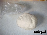 На стол высыпать еще стакан муки, выложить массу - и быстренько замесить тесто, подсыпая муку.