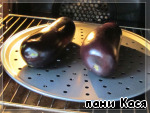 Баклажаны вымыть, обсушить, запечь в духовке на среднем огне до появления морщинок на кожице (я пекла при 180, минут 20)