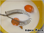 Яйца (оставшиеся 2 штуки) взбиваем с молоком. Молока я взяла 200 грамм, вполне хватило, если делать 4 горшка, то молока надо будет побольше.