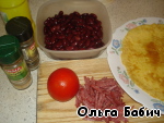 Яйца взбить, добавить соль, 1 ст. л. воды, пожарить омлет на оливковом масле.