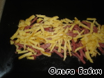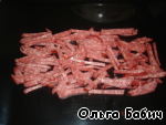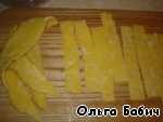 Нарежем омлет: неровные части режем мелко, полоски - для украшения.