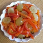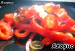 В сотейнике сильно разогреть масло. Перцы сложить в глубокую миску и залить горячим маслом. Накрыть крышкой, положить сверху груз и оставить в теплом месте на 1 ч.