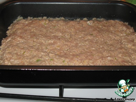 Приготовить смешаный мясной фарш (у меня курица и говядина), выложить в форму.