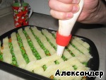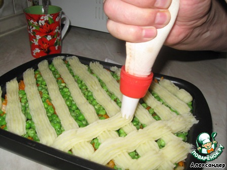 Приготовить картофельное пюре и с помощью кондитерского шприца выложить узором.