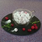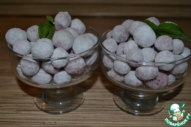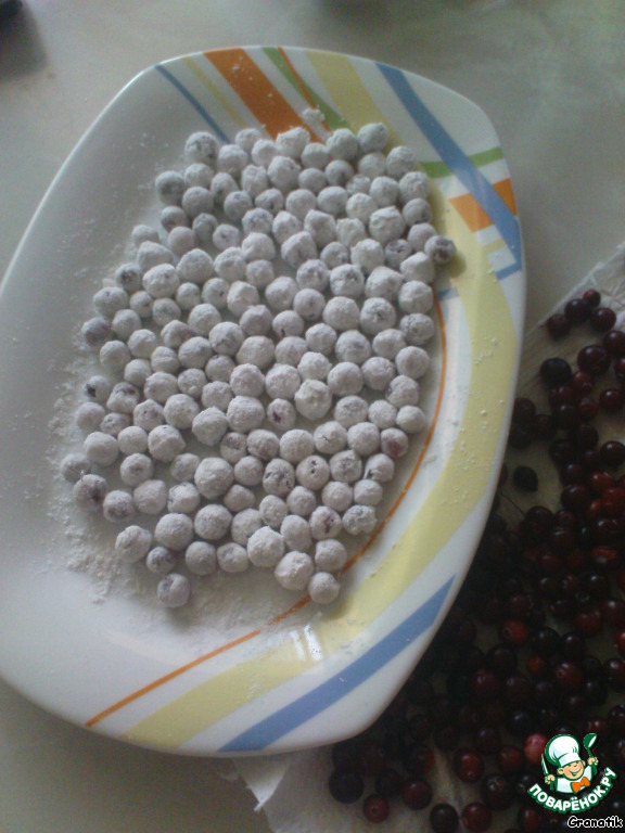 [+5]Что бы белок не стекал в пудру нужно ягодки доставать руками из белка.