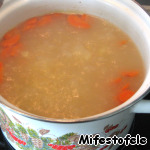 В бульон запускаем картофель, нарезанный кубиками, морковку, нарезанную полукружочками (или тертую, если цель – суп-пюре)
