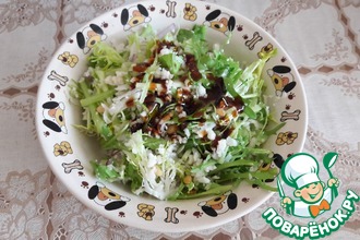 Перемешать все ингредиенты, добавить приправу, растительное масло, сахар, соль и уксус.