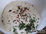 Муку просеиваем, очень-очень мелко крошим перец и кинзу, измельчаем кумин (ступки у меня пока нет, я его просто потерла ложками). С кумином главное - не переборщить, у него достаточно сильный аромат. Все сухие ингредиенты смешиваем в большой посуде.