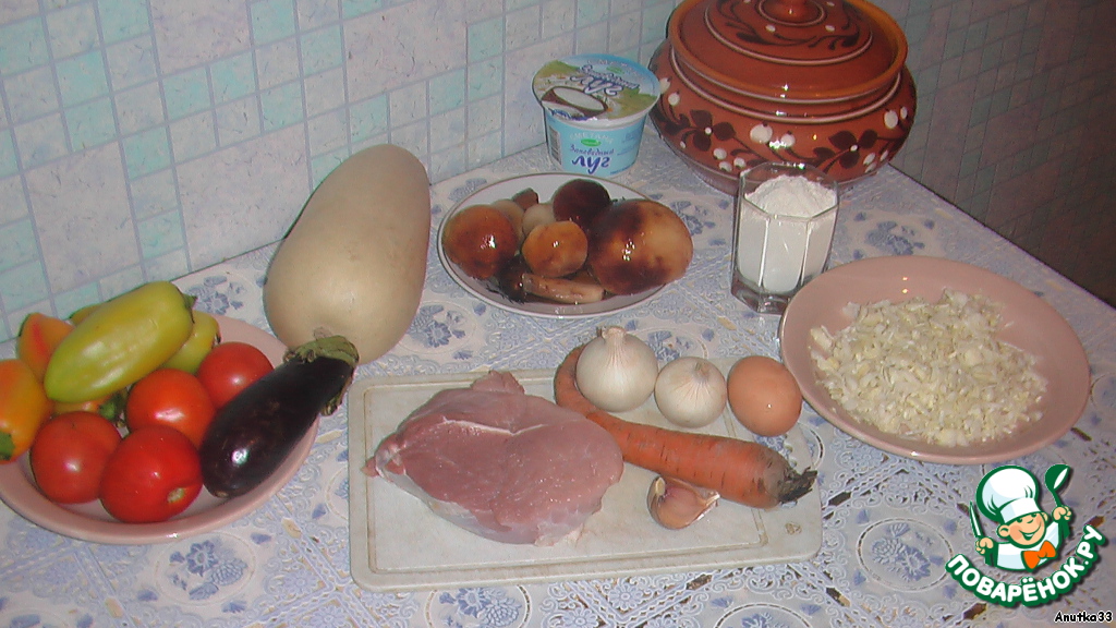 • Подготавливаем ингредиенты для осеннего танго в горшочке. Моем овощи, грибы и мясо.