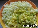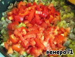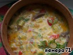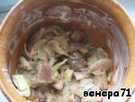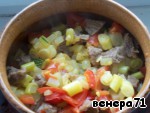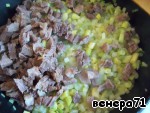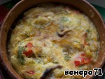 Далее овощную-мясную смесь. Не заполнять до конца, должно остаться место для заливки.