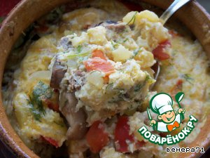 Моя семья любит яичницу с овощами, грибами и мясом. Я решила приготовить ее в горшочке. На Конкурс "Осеннее танго"