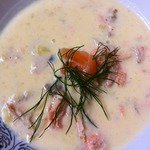 Подавать суп в подогретых суповых тарелках или чашках, в каждую положить по кусочку лосося и по веточке фенхеля или укропа. Приятного аппетита! |