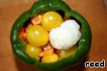 Рецепт «Фаршированный овощами перец, запеченный со свининой в горшочке»: