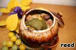 Фаршированный овощами перец, запеченный со свининой в горшочке