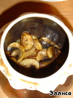 и последний слой - грибы, и опять сбрызгиваем соевым соусом.