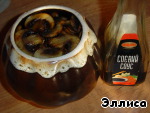 Следующий слой - грибы, сбрызгиваем соевым соусом.