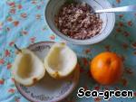 Грушу разрезать пополам, ложкой аккуратно удалить сердцевину и часть мякоти, чтобы получились лодочки. -