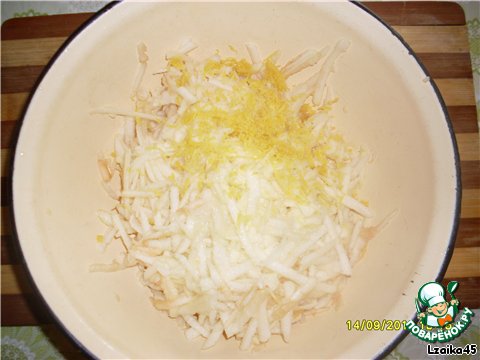 Яблоки почистить и натереть на крупной тёрке. Добавить лимонную цедру одного лимона и сок половины лимона...