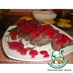 Достаем мяско из духовки, режем на куски, поливаем соусом и подаем на стол! ПРИЯТНОГО АППЕТИТА!