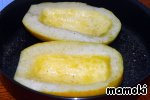 Помыть, вытереть, разрезать (если маленький - на 2 части, большой - на 4). Удалить мягкие волокна с семенами. Смазать части растительным маслом, посолить и поперчить по-вкусу.