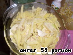Картофель режем соломкой и укладываем в нашу кастрюльку