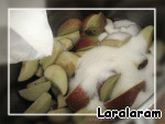 Дольки яблок я положила в кастрюлю, пересыпав сахаром.