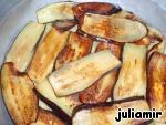 2. Баклажаны вымыть и нарезать вдоль ломтиками. Посолить и оставить на 15 мин.