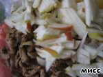 Мясо лучше брать нежирное, нарезать тонкими полосками.