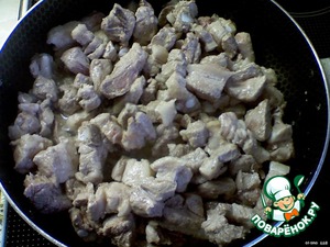 Грудинку помыть, обсушить и порезать небольшими кусочками.