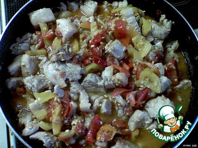 Рецепт «Свиная грудинка с перловкой и лечо»: