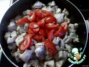 добавить порезанные помидоры и лечо, перемешать, добавить приправу и пять минут потушить.