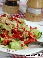 Салат получился довольно легким и сытным, готовить очень быстро. Хорошо подойдет для разгрузочных дней, а также может заменить полноценный обед. В оригинальном рецепте куриная грудка должна обжариваться, но я решила отварить.