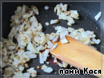 Обжарить лук до легкого золотистого цвета. Можно добавить рубленый чеснок.