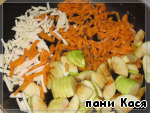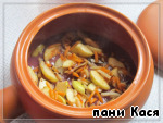 Яблоко, морковь и петрушку обжарить с масле, которое осталось от мяса.