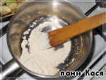 залить половиной бульона и вина, посолить и тщательно перемешать, постараться избежать комочков.