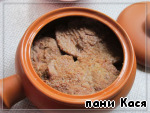 ... и быстро обжарить с 2 сторон на очень горячей сковороде. Не старайтесь дожарить до готовности, они дойдут в горшочке. Выложить пока в какую-нибудь мисочку-тарелочку. Сковородку оставить! Нам она понадобится именно с маслом из-под мяса.