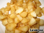 Обжариваем грушу в соке, оставшемся после жарки мяса.