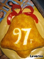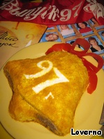 Далее из кожуры помидора сделаем бантик. Из бумаги вырежем буквы и цифры. Накладываем на звоночек и обсыпаем куркумой сверху. Черным перцем снизу звонок. Убираем буквы.