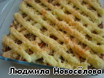 Выкладываем фарш в форму, разравниваем.