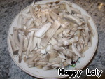 Подготавливаем все продукты. В первую очередь режем шампиньоны соломкой.