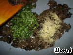 В конце добавим орехи, чеснок, лук, перец черный и соль по вкусу.