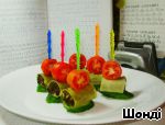 Подаем с огурцами и помидорами на шпажках. Приятного аппетита!!!