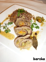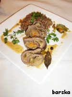 А шпажки у меня металлические, для рулетов , 10шт - 1 Евро. Удобные, не ломаются. Правда всегда надо следить, чтобы острие было утоплено в мясе и не царапало посуду...